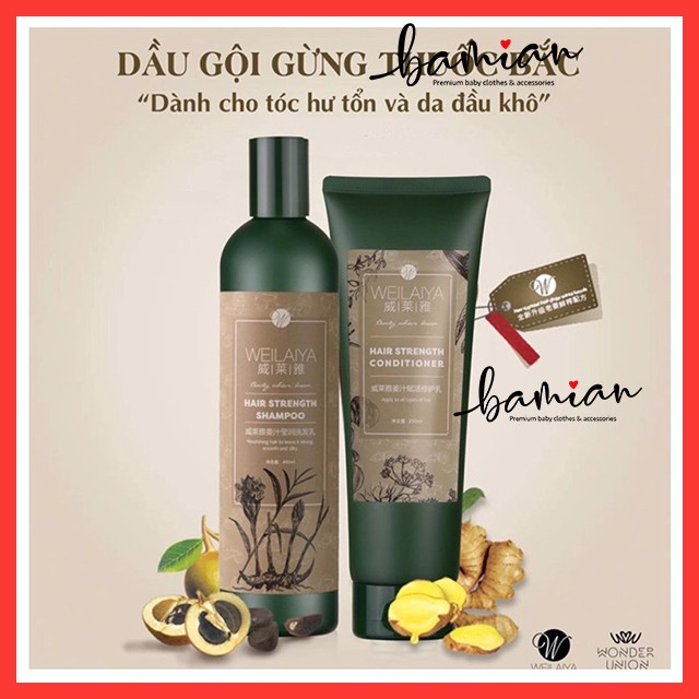 Bộ Dầu Gội Đầu Xả gừng hà thủ ô Weilaiya chính hãng Hỗ Trợ Mọc Tóc và ngăn ngừa Rụng Tóc (SẴN SLL) free ship